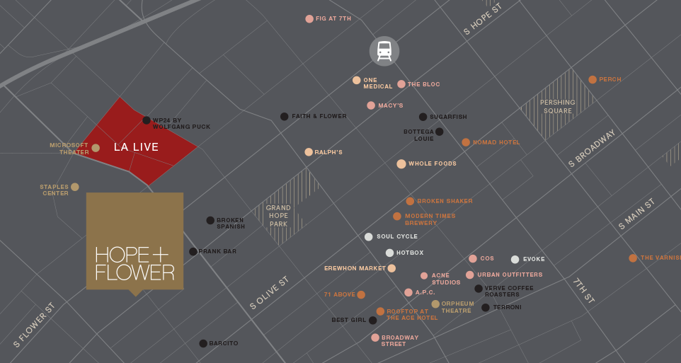 Located steps from LA Live, STAPLES Center and more, Hope + Flower is the newest luxury rental community in Downtown Los Angeles. Suites offer condo-level finishes throughout and exclusive access to 42,000 sq.ft of indoor & outdoor amenities.
